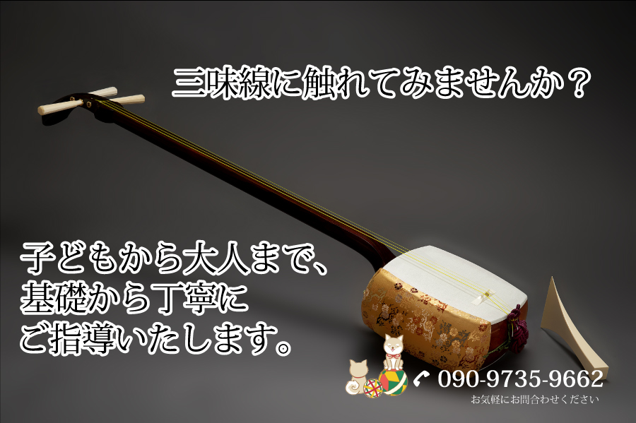 お稽古で使用する三味線はお貸しいたしますので、お持ちいただかなくて大丈夫です。練習用三味線のご購入をお考えの方は、ご相談いただければ購入場所や選び方などのアドバイスをさせて頂きます。また、三味線のレンタル(有料)もございます。お気軽にご相談ください。 |